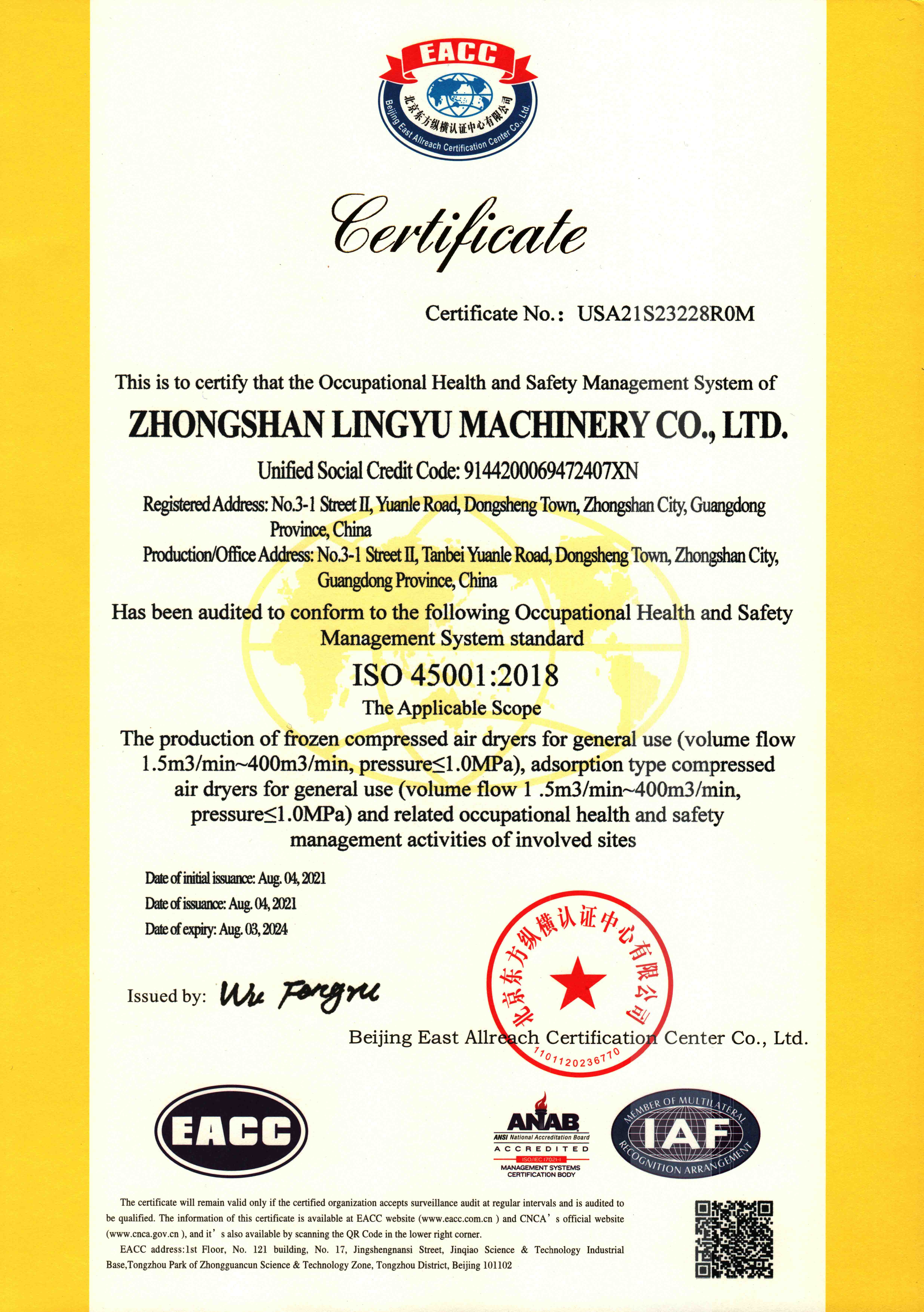 • 吸干機GCCA證書-凌宇機械